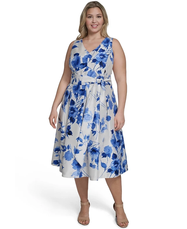 Donna Karan Floral Print Lightweight Scuba Sleeveless Midi Dress