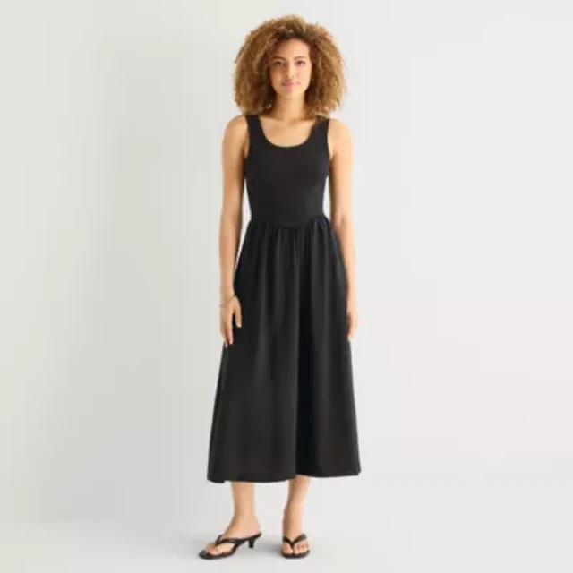 Denim Strapless Sweetheart Corset Midi Dress with Pockets