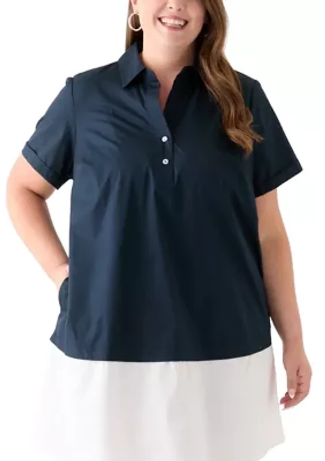Karen Kane Sandwash Twill Point Collar 3/4 Ruched Sleeve Button-Front Shirt Dress