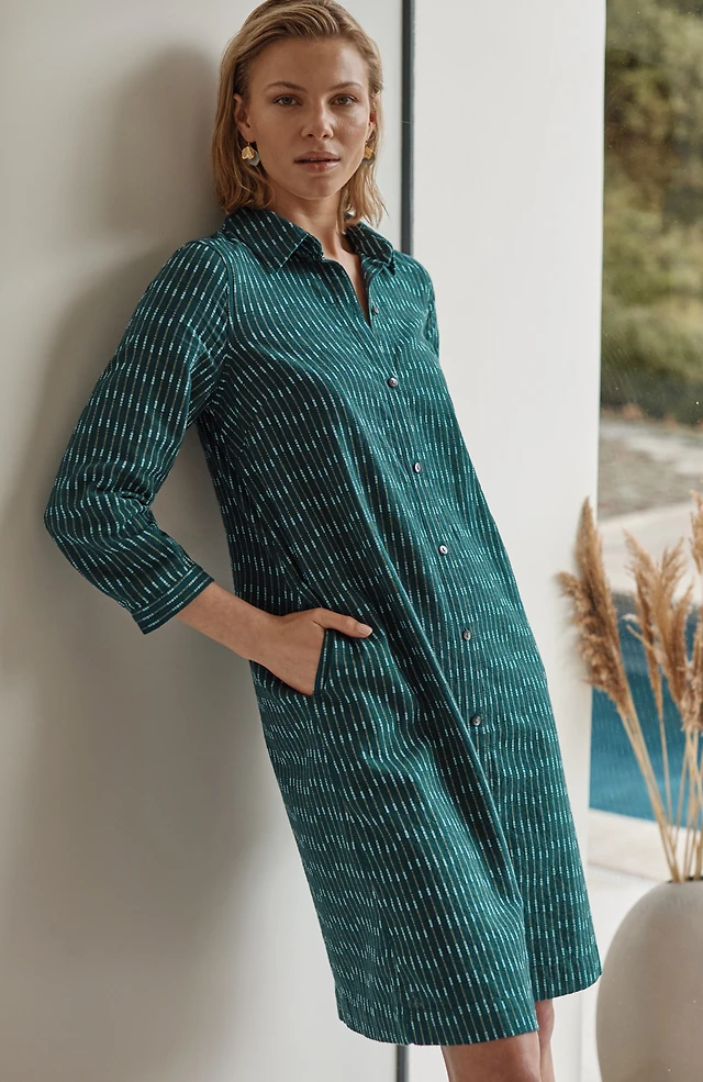 Plus Short Sleeve Yarn Dyed Belted Shirtdress