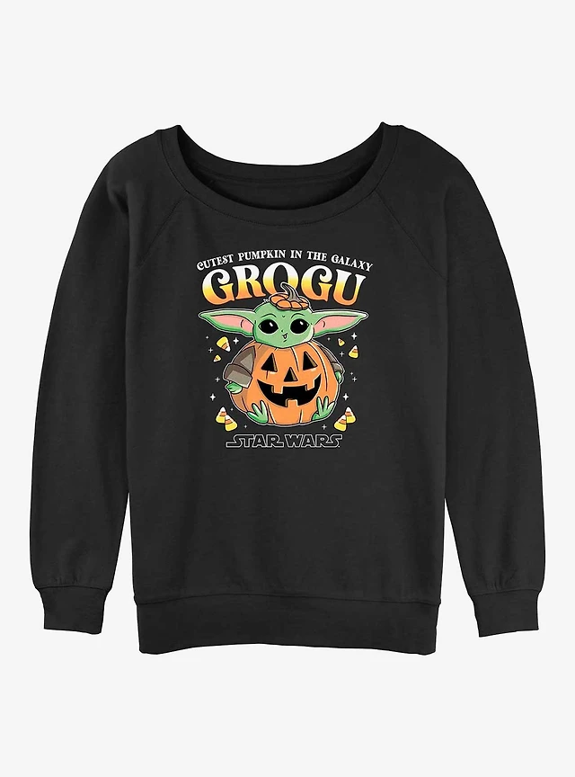 Star Wars The Mandalorian Pumpkin Grogu Girls Slouchy Sweatshirt