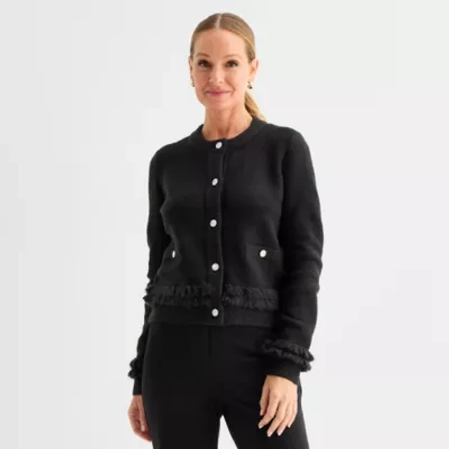 Liz Claiborne Womens Crew Neck Long Sleeve Button Tall Cardigan