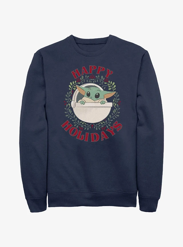 Star Wars The Mandalorian Grogu Wreath Happy Holidays Sweatshirt