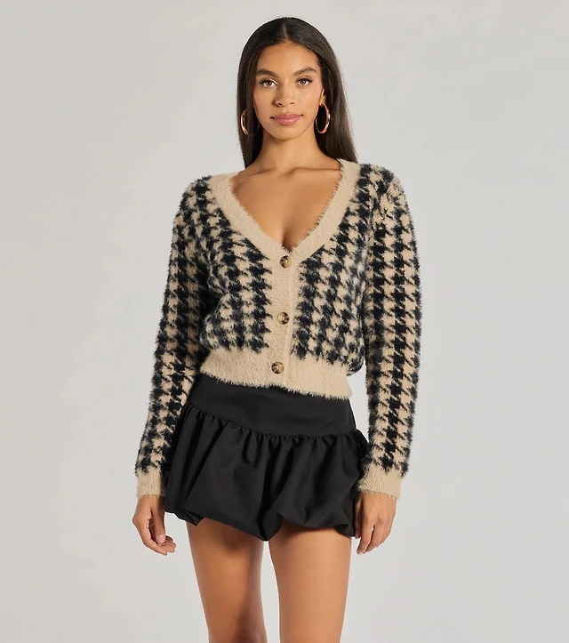 Polished Cozy Houndstooth Eyelash Knit Cardigan