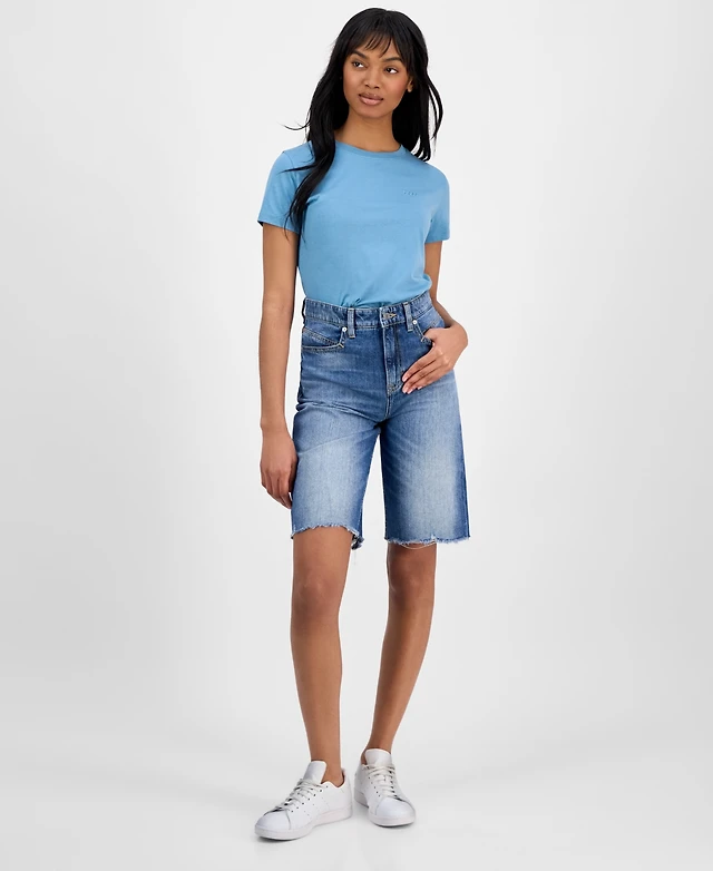 Dkny Jeans Women's Chambray High Rise Dolphin-Hem Shorts - FJZ
