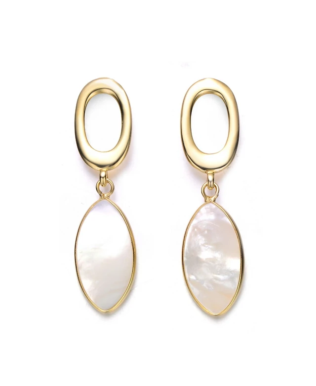 Gold Pearl Oval Petal Drop Earrings