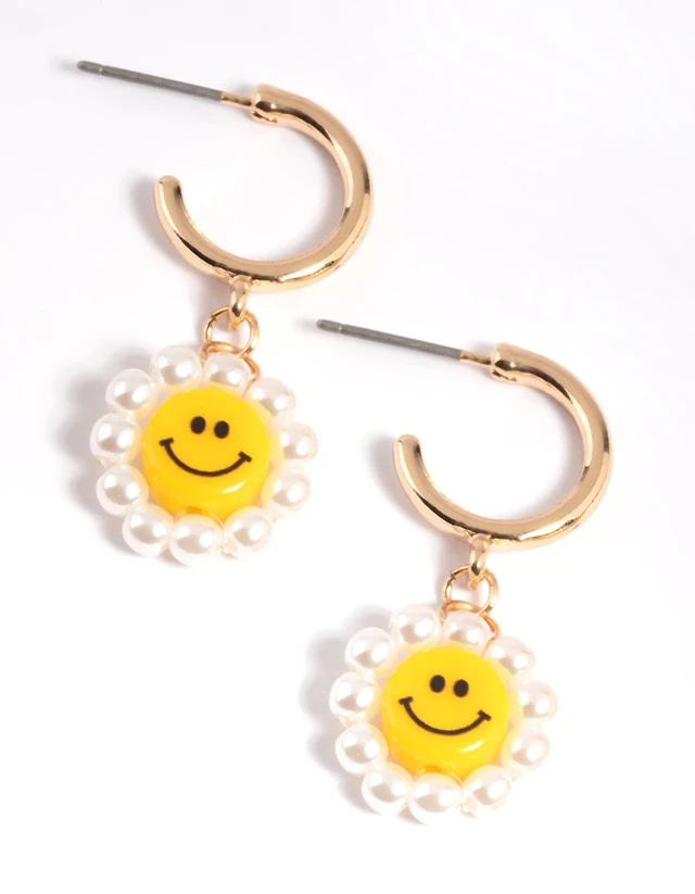 Gold Plated Acrylic Flower Pearl Drop Earrings