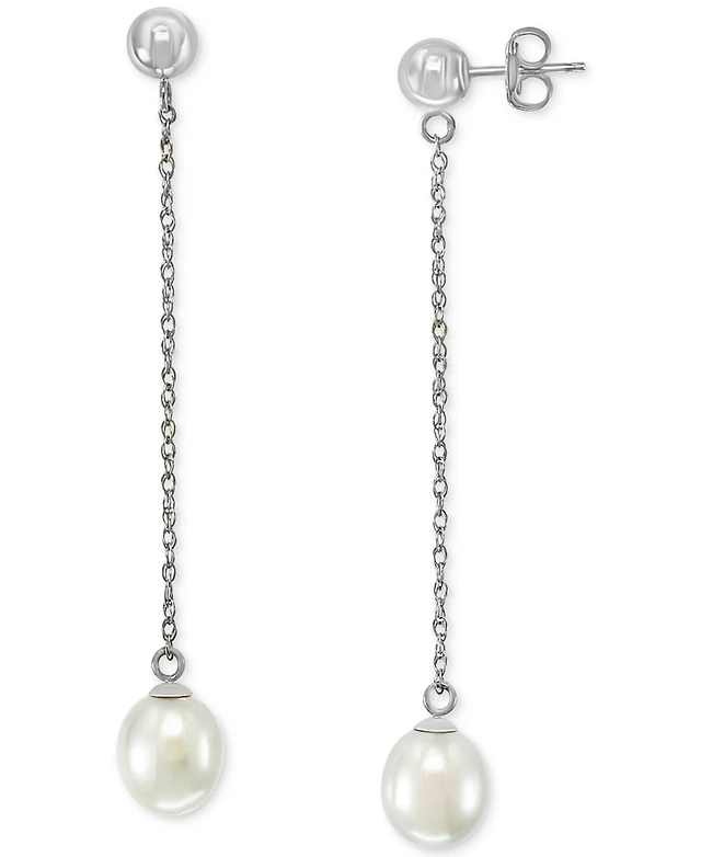 Effy Freshwater Pearl (7mm) Chain Drop Earrings in 14k White Gold