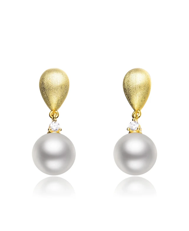 Cubic Zirconia Sterling Silver Brushed Gold Plated Pearl Drop Earrings