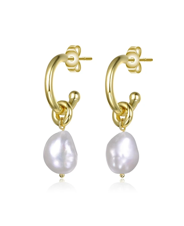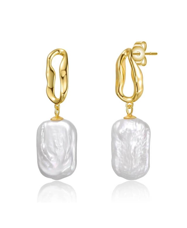 Sterling Silver 14K Gold Plated with Baroque Freshwater Pearl Drop Earrings