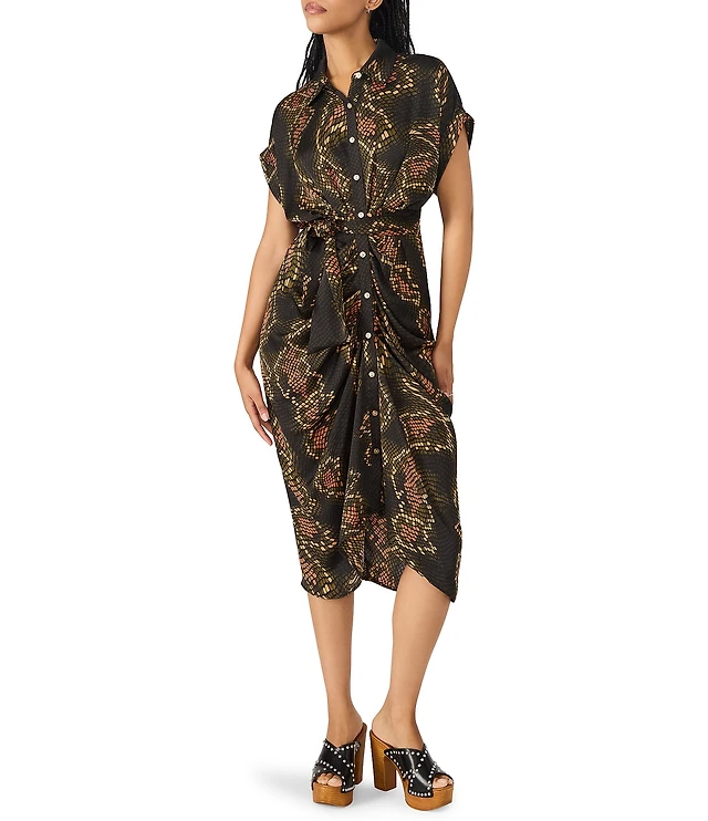 Yumi Women's Bird And Floral Print Midi Wrap Dress