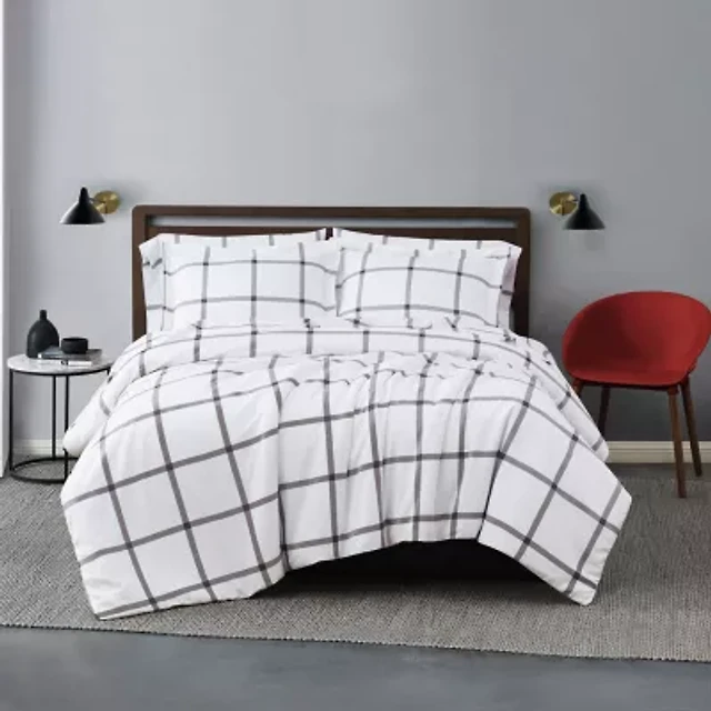 Vera Wang Blurred Plaid Cotton 3-Pc. Duvet Cover Set