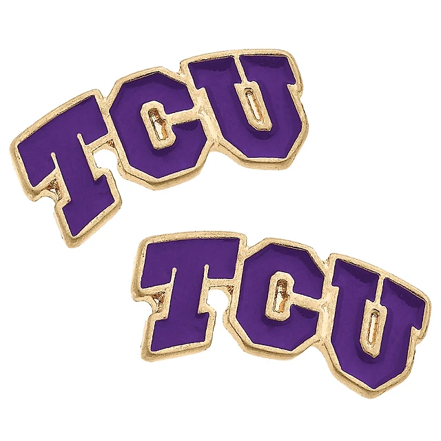 Women' CANVAS Style TCU Horned Frogs Enamel Stud Earrings