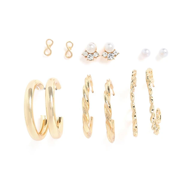Sohi Women's Gold Pack Of 12 Minimal Stud Earrings