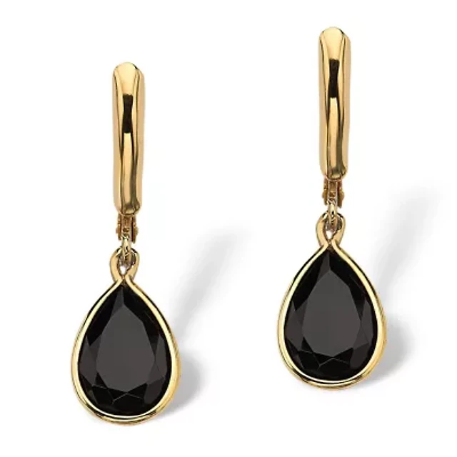 Pear-Shaped Genuine Onyx Yellow Gold-Plated Drop Earrings