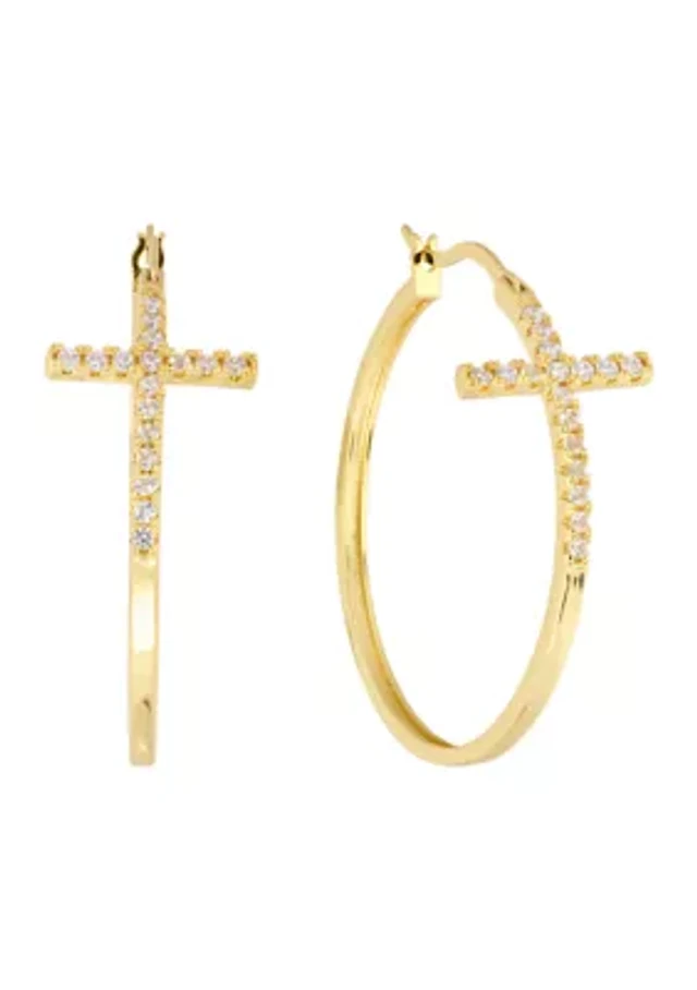 Gold-Plated Crystal Cross Click-Top Hoop Earrings