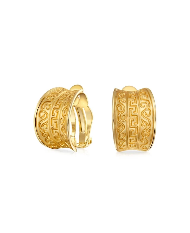 Bling Jewelry Egyptian Greek Motif Wide Half Hoop Clip On Earrings Non Pierced Ears Matte Gold Plated Brass
