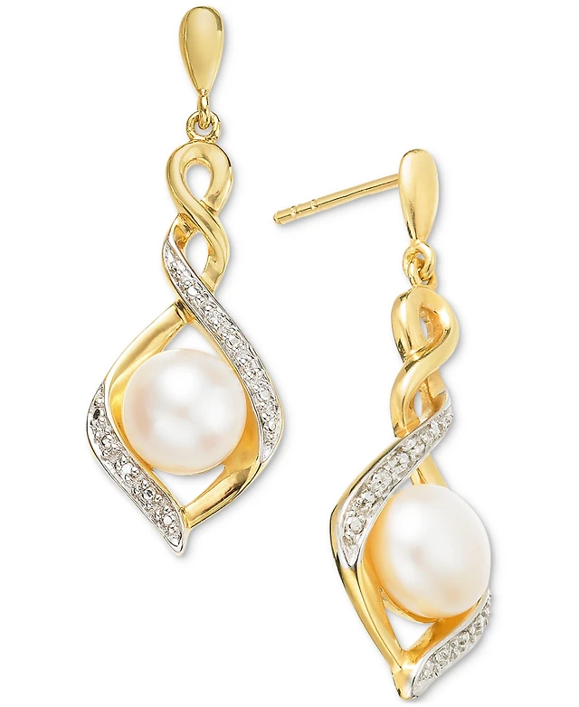 Cultured Freshwater Pearl (7 mm) & Cubic Zirconia Twist Drop Earrings in 14k Two-Tone Gold-Plated Sterling Silver