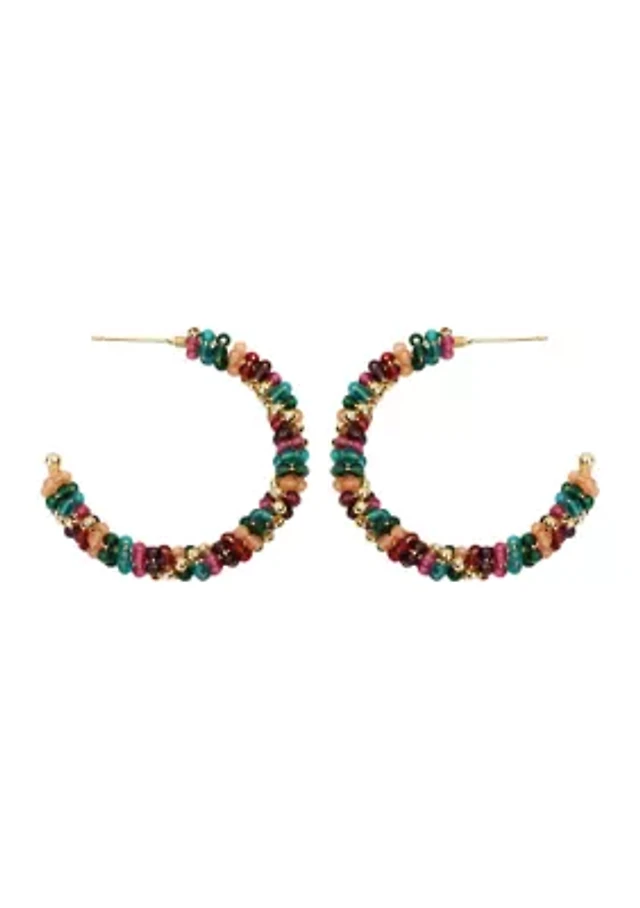 Gold Plated Multi Crystal Chain Twist Hoop Earrings