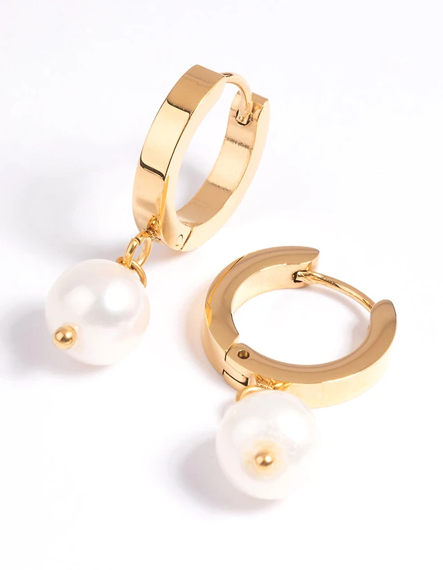 Gold Plated Sterling Silver Pearl Drop Hoop Earrings