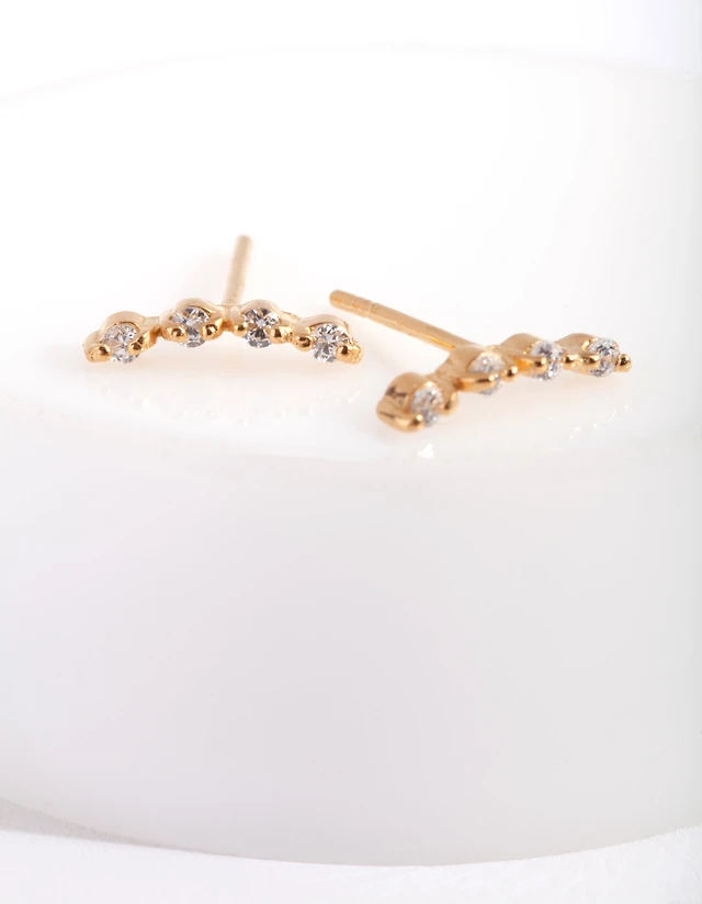 Gold Plated Sterling Silver Cubic Zirconia Stud Earrings
