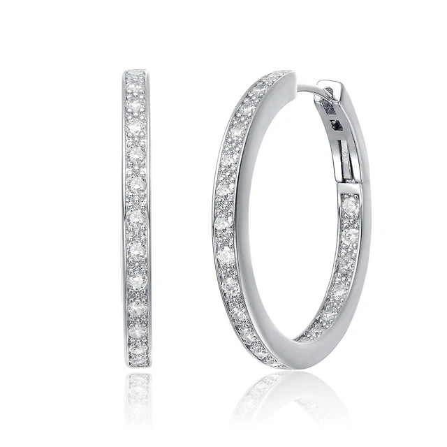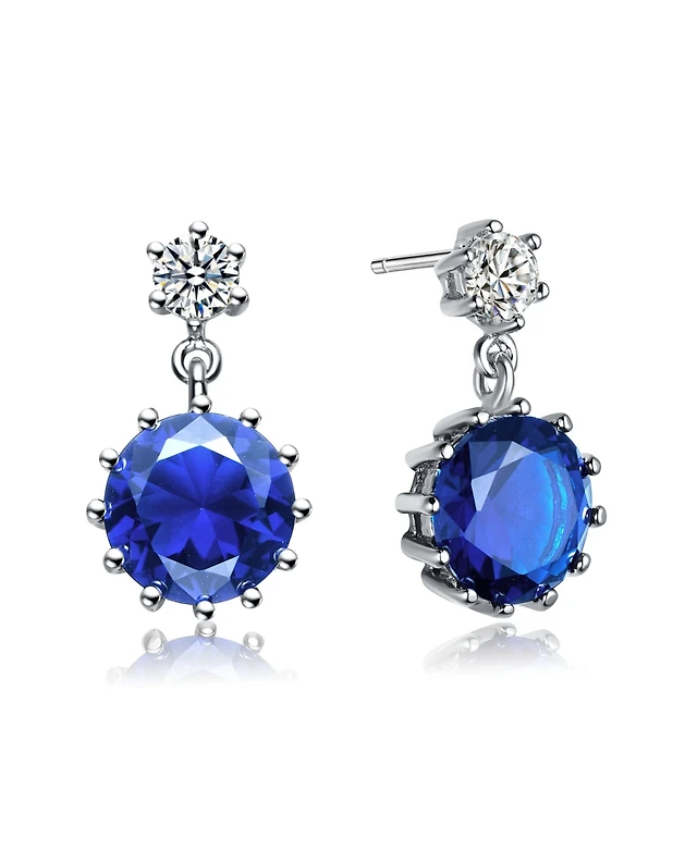 Sterling Silver White Gold Plated Cubic Zirconia Circle Drop Earrings