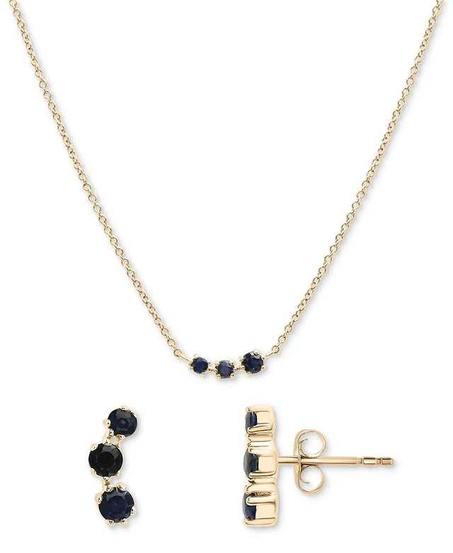 2-Pc. Blue Sapphire (3/8 ct. t.w.) Three-Stone Earrings & Necklace Set in 14k Gold-Plated Sterling Silver