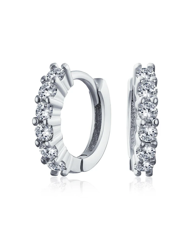 Bling Jewelry 5 Solitaire Cz Small Kpop Huggie Hoop Earrings Round Cubic Zirconia Rose Gold Plated .925 Sterling Silver