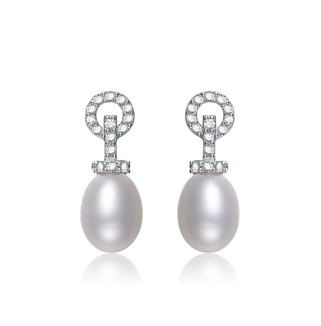 Sterling Silver White Gold Plated Cubic Zirconia Pearl Drop Earrings