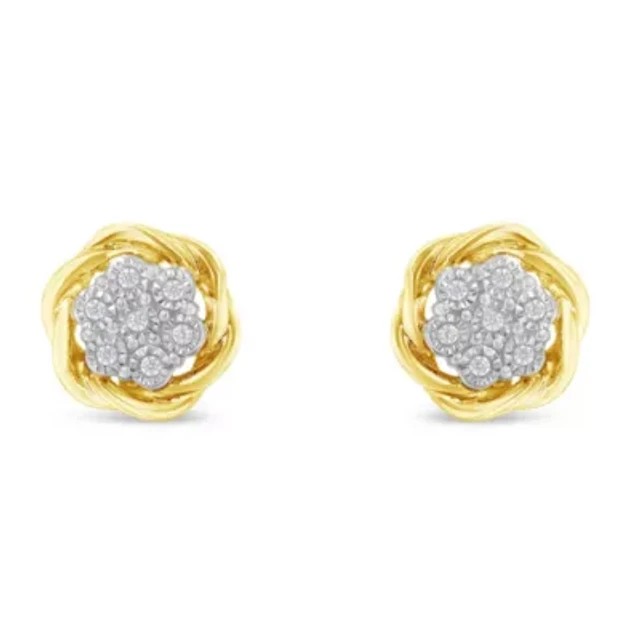 1/10 CT. T.W. Diamond Concave Square Stud Earrings in Sterling Silver and 14K Gold Plate