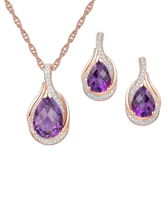 Gold Plated Emerald Teardrop Diamante Drop Necklace & Earrings Set
