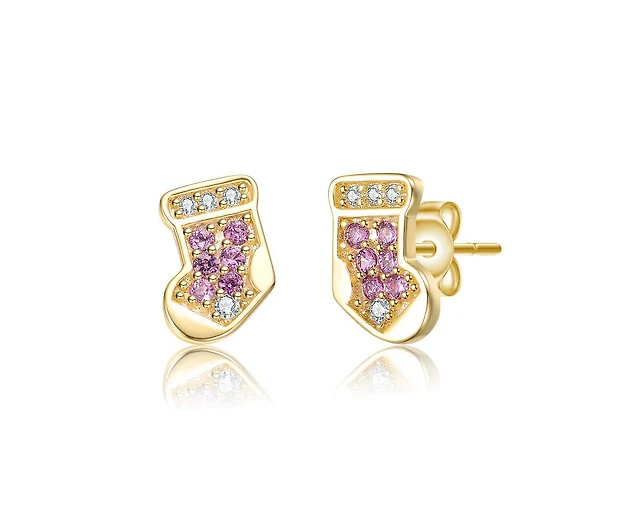 Cubic Zirconia Butterfly Stud Earrings in Solid Sterling Silver with 14K Gold Plate