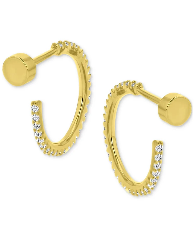1/20 CT. T.W. Diamond Eyelash Huggie Hoop Earrings in Sterling Silver with 14K Gold Plate