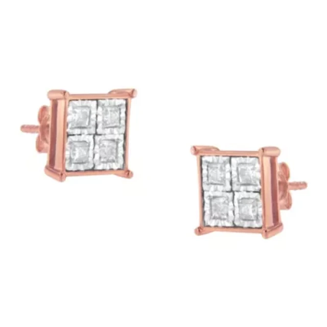 Rose Gold Plated Sterling Silver Diamond Composite Stud Earrings