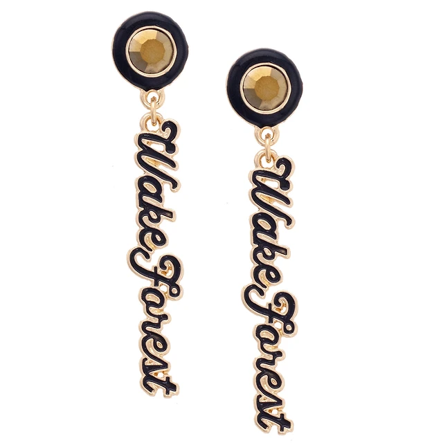 CANVAS Style Wake Forest Demon Deacons 18k Gold-Plated Rhinestone Drop Script Earrings