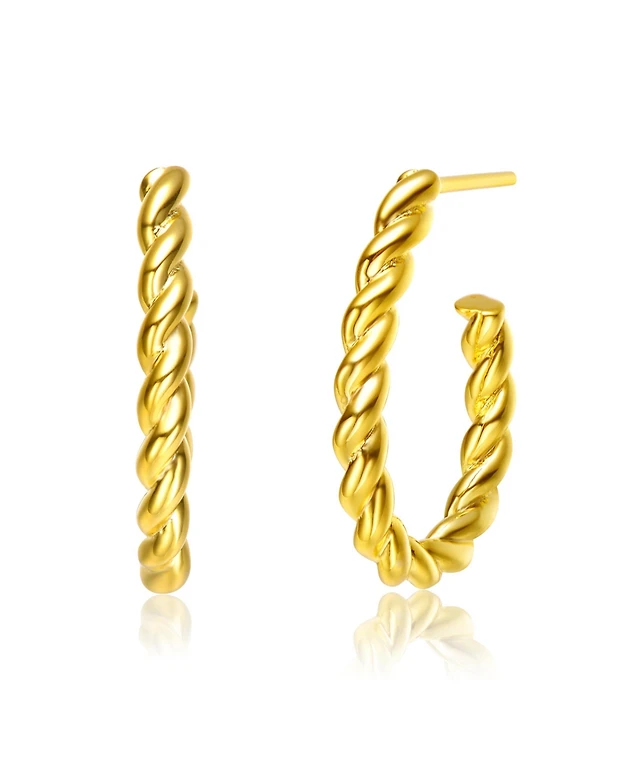 Waterproof Gold Plated Stainless Steel Twisted Medium Hoop Earrings