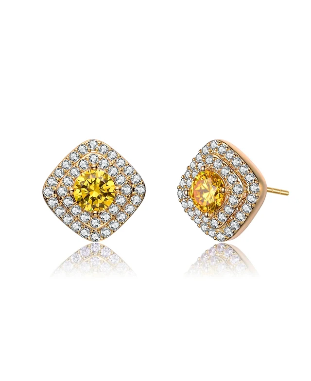 14K Gold Plated Clear Cubic Zirconia Pave Stud Earrings