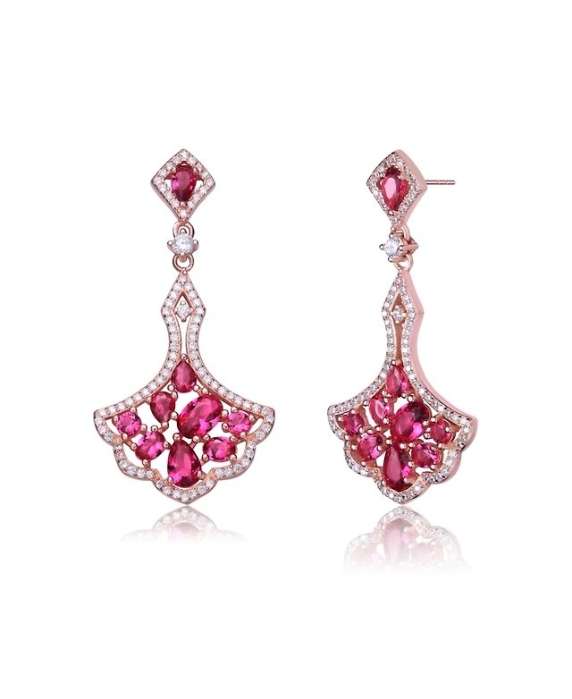 Rose Gold Plated Red Cubic Zirconia Accent Dangle Earrings