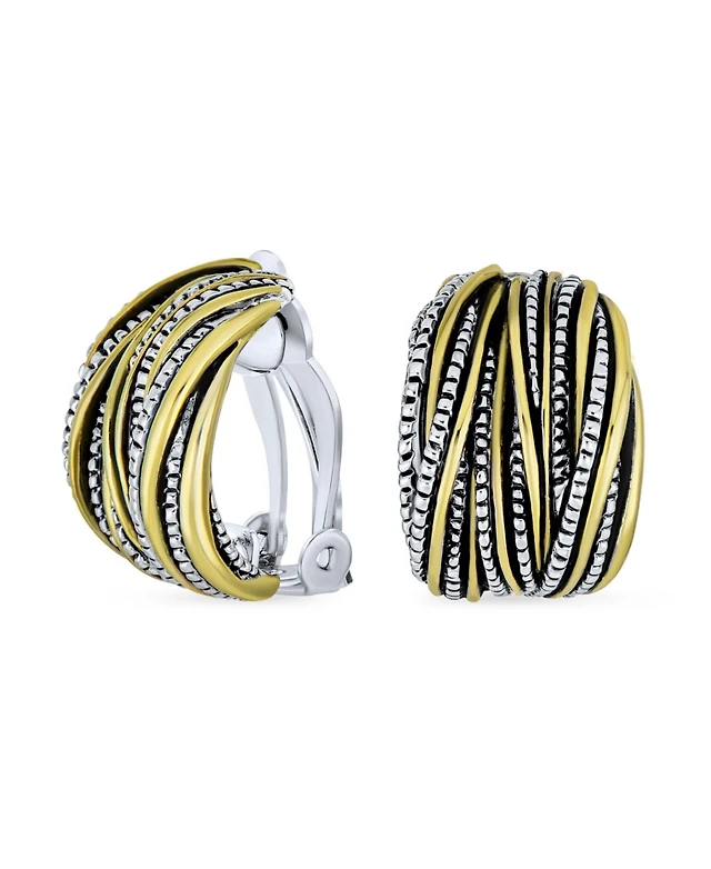 Bling Jewelry Half Hoop Shrimp Style Clip-On Earrings Two Tone Caviar Bead Silver Gold Plated