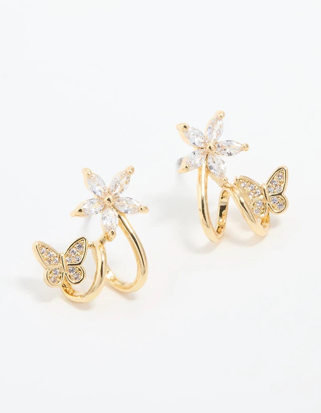 Gold Plated Sterling Silver Cubic Zirconia Butterfly Huggie Earrings