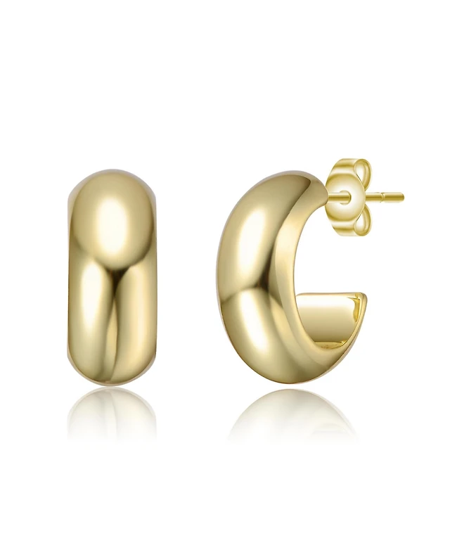 Wide Polished Small Hoop Earrings 14k Gold-Plated Sterling Silver, 20mm