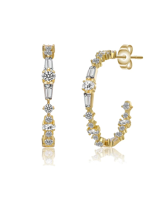 Sterling Silver Cubic Zirconia C-Hoop Earrings White Gold Plated or 14K