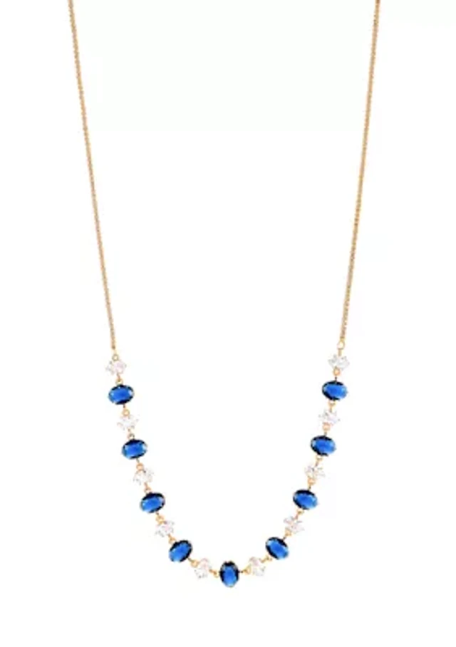 Lab Grown Gold Plated Oval Clear and Blue Cubic Zirconia Necklace and Earring Set