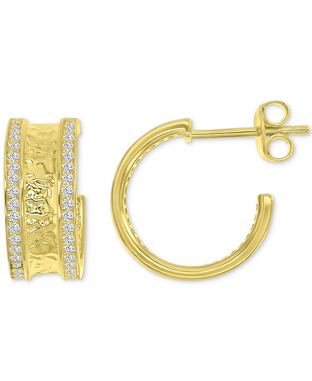 Cubic Zirconia Octagon Small Hoop Earrings in 14k Gold-Plated Sterling Silver, 0.51"