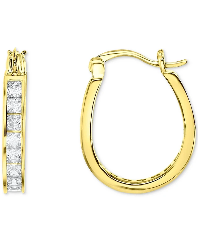 Cubic Zirconia Baguette Small Hoop Earrings in 14k Gold-Plated Sterling Silver, 0.57"