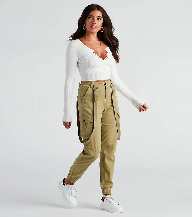 Look Again Ponte High-Rise Cargo Joggers