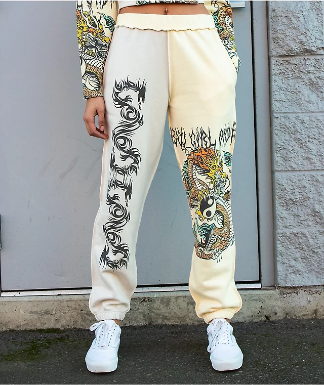 NGOrder Yin Yang Dragon Panel Yellow & Beige Sweatpants
