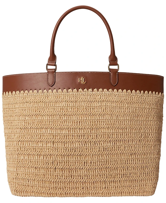 Lauren Ralph Lauren Straw-Leather Small Tasha East-West Shoulder Bag