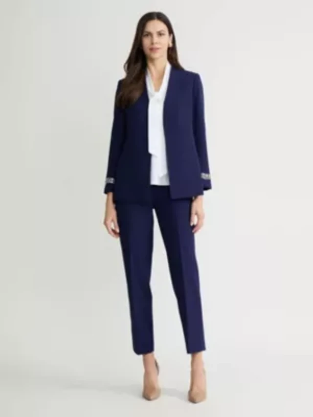 Kasper Women's Stretch Crepe Collarless Embellished Bracelet-Sleeve Jacket