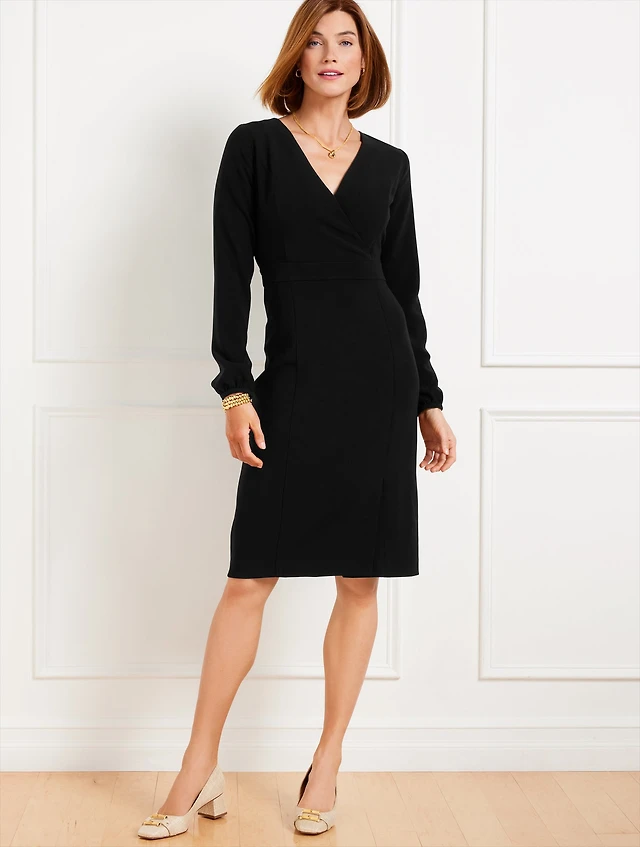Crew Neck Long Sleeve Wrap Mini Sweater Dress
